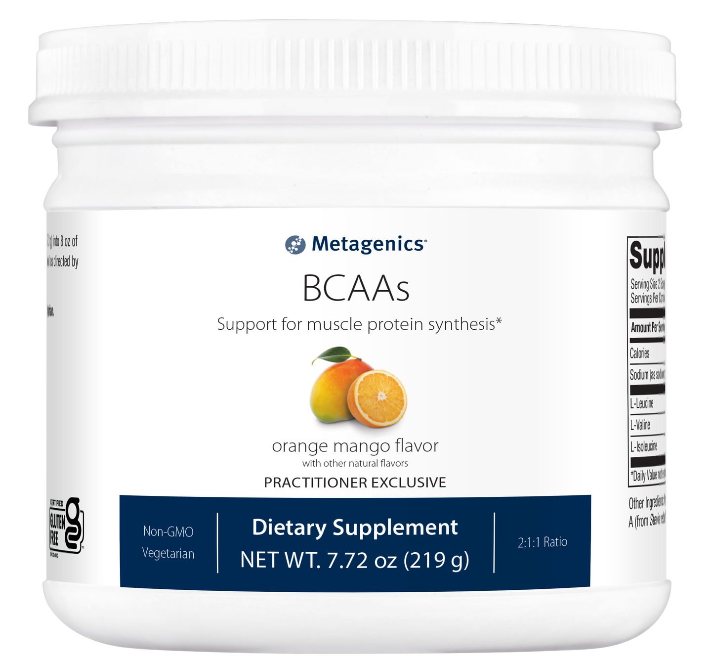 Complement your workout lineup with Metagenics BCAAs, featuring clean, highquality branched-chain amino acids. Metagenics BCAAs is formulated with a 2:1:1 ratio of leucine to isoleucine to valine. Branched-chain amino acids can be an important part of workout recovery—helping to support muscle protein synthesis and reduce temporary muscle soreness after exercise.*