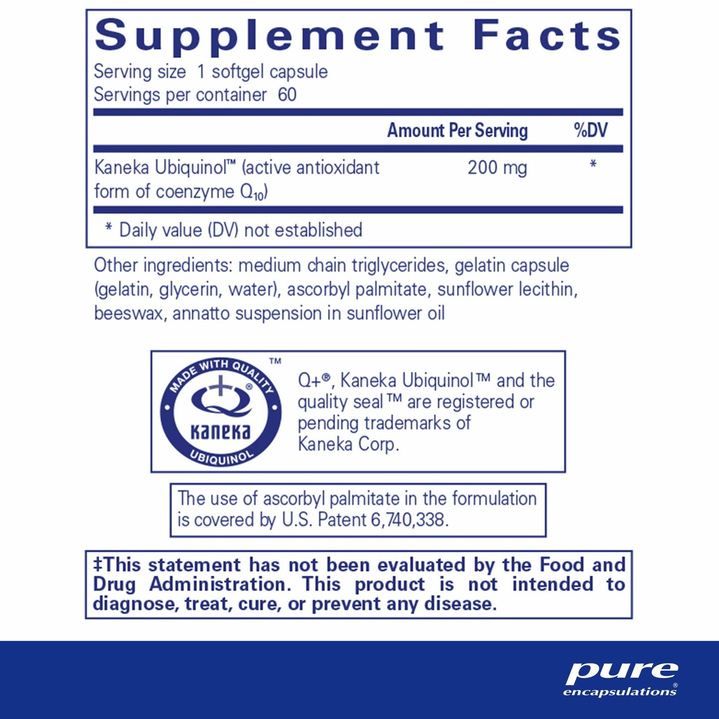Servings Per Container: 60Amount per serving % Daily ValueKaneka Ubiquinol"' (active antioxidant form of coenzyme Q10l 200mg ** Daily value (DV) not established