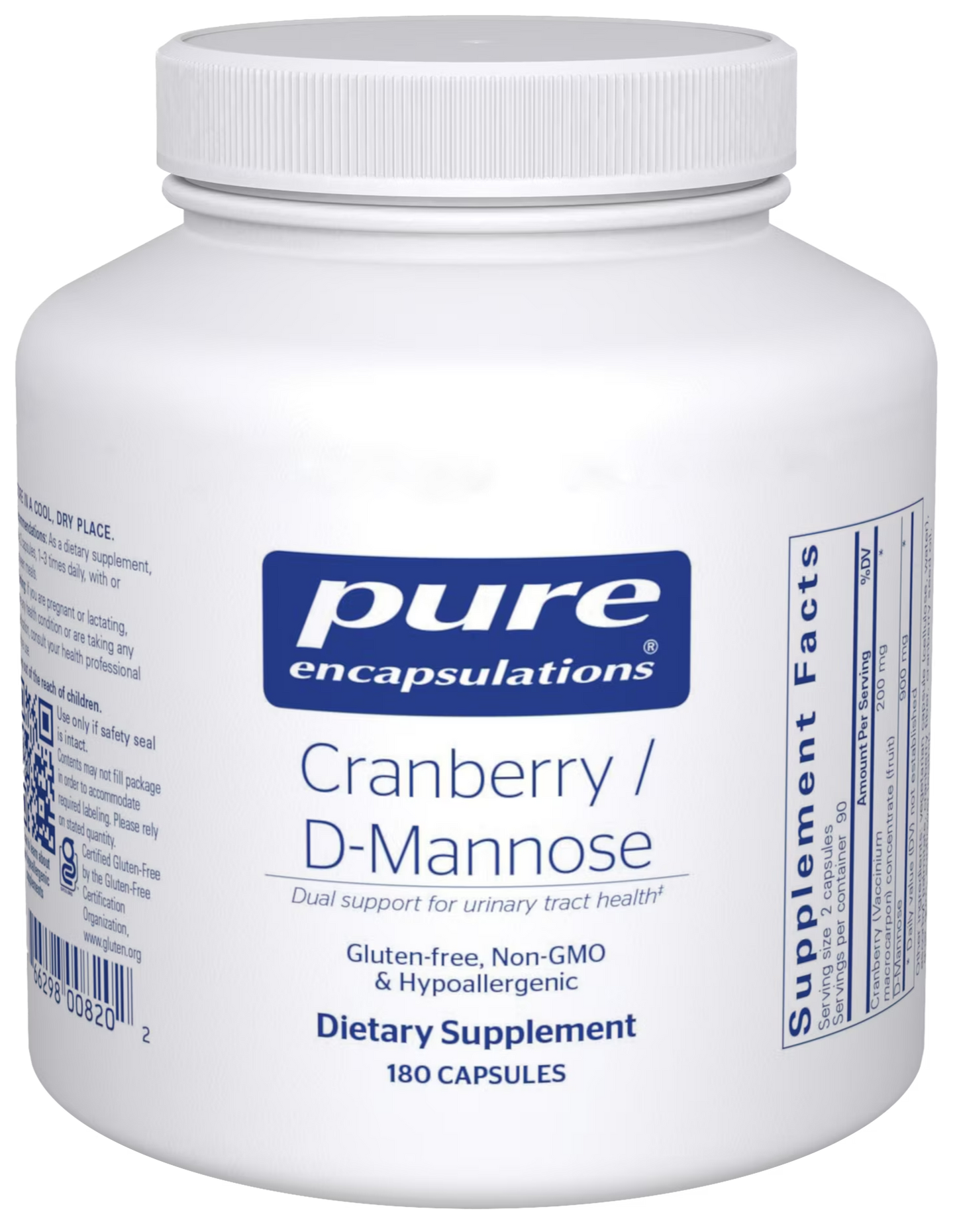 Cranberry/d-Mannose combines cranberry extract made from 100% cranberry fruit solids and d-mannose for both time-tested and concentrated support of urinary tract comfort.
