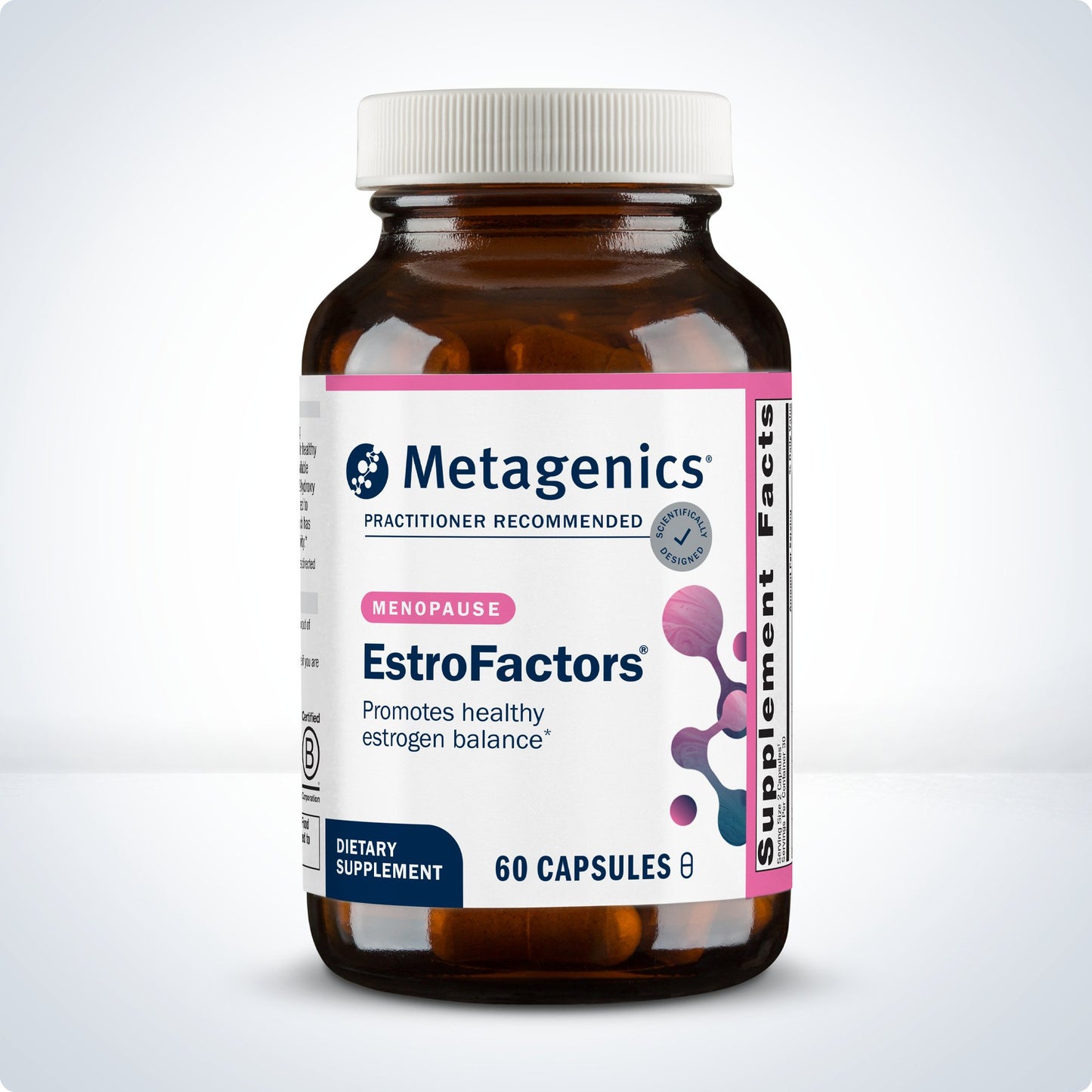 EstroFactors®is a unique formula featuring phytonutrients that provide targeted support for healthy estrogen metabolism. Offering highly bioavailable BioResponse DIM®which may promote the 2-hydroxy estrone pathway. HMR lignans are also featured to increase the production of enterolactone, which has been associated with reduced aromatase activity.*