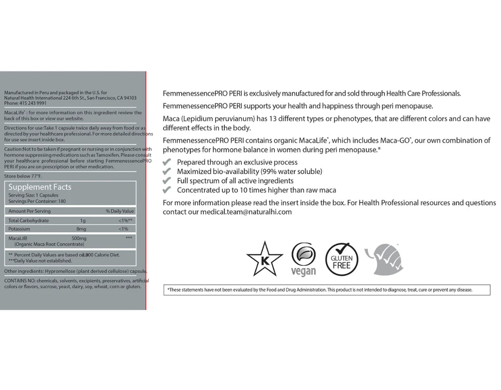 Caution: Not to be taken if nursing or past the second trimester if pregnant, unless directed by your healthcare professional, or in conjunction with hormone suppressing medications such as Tamoxifen. Please consult your healthcare professional before starting FemmenessencePRO PERI if you are on prescription or other medication.