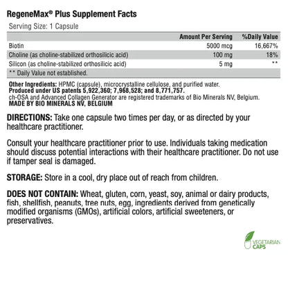 New &Improved Formula. RegeneMax Plus is a patented choline-stabilized formulation of orthosilicic acid (OSA) whichhelps nourish your body’s beauty proteins by supporting and activating enzymes used by collagen-generating cells to make collagen.